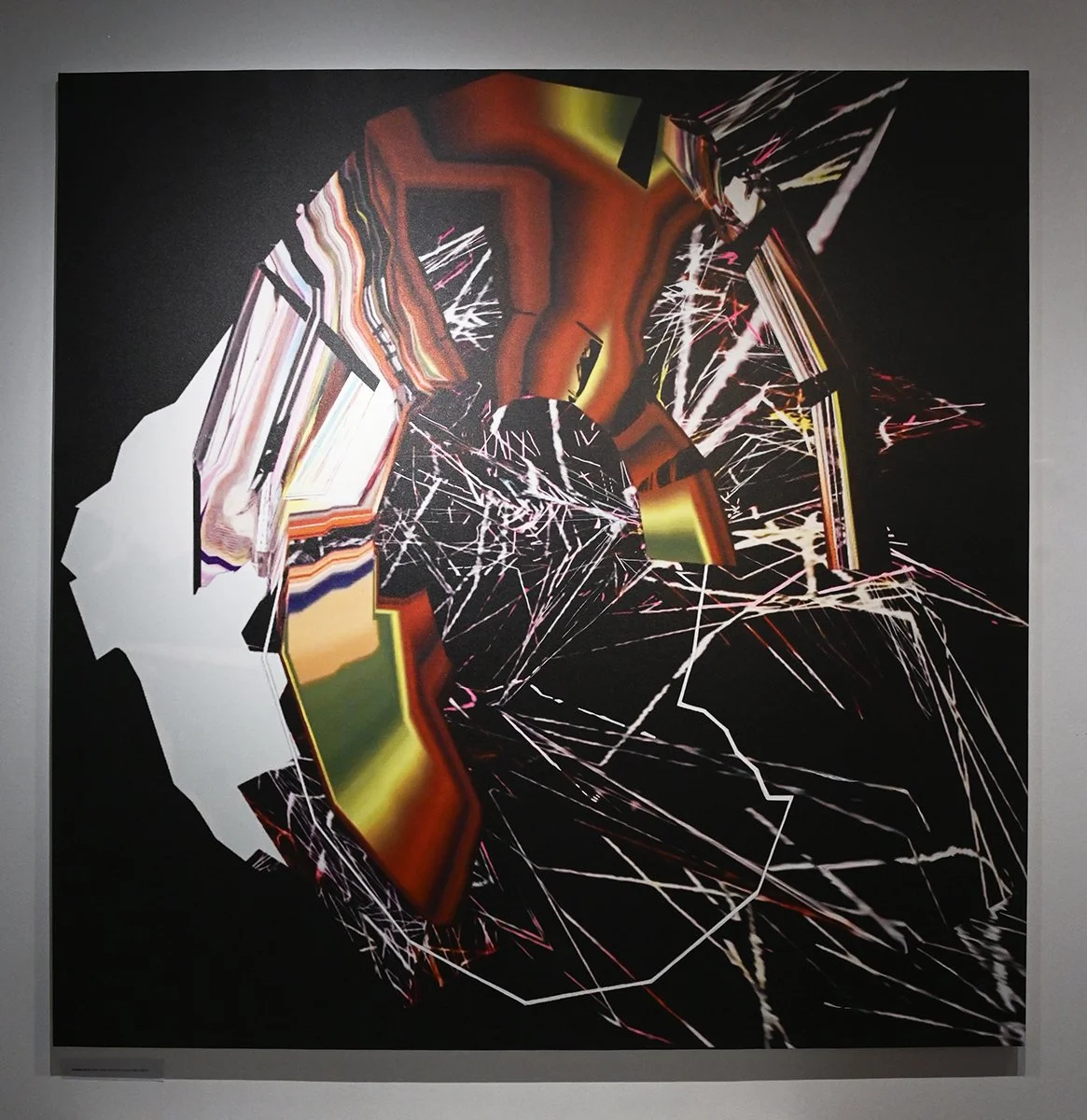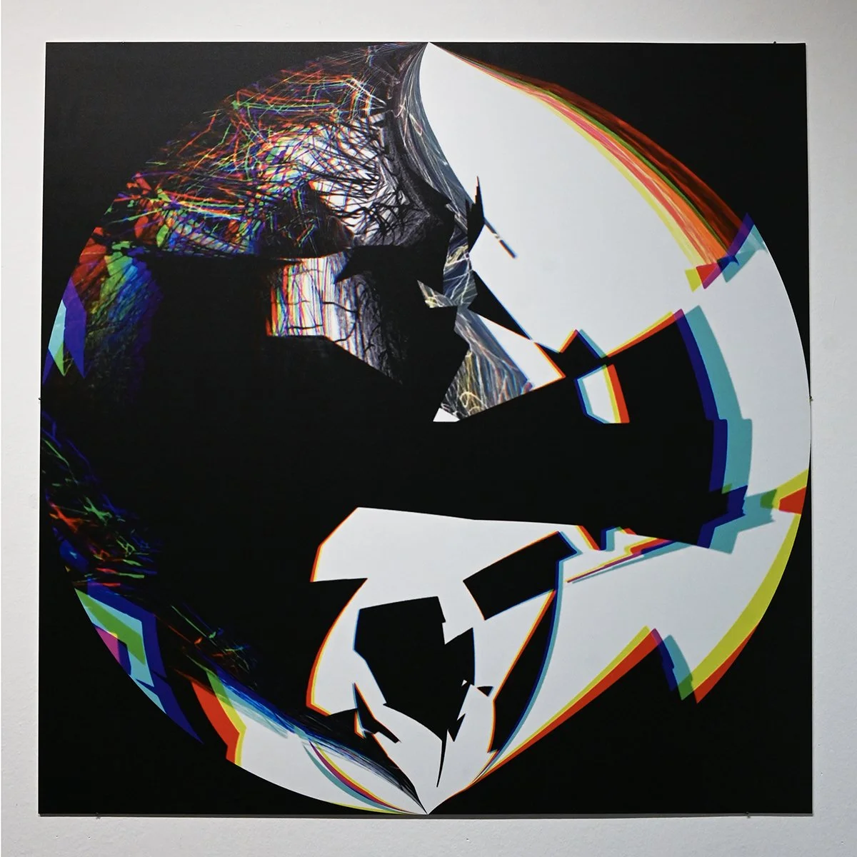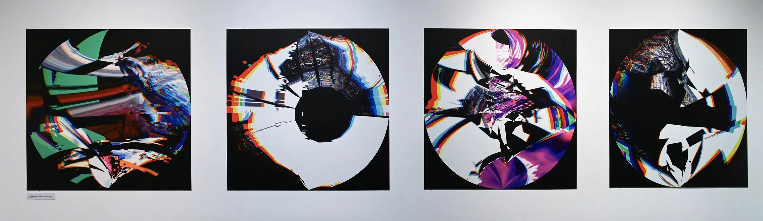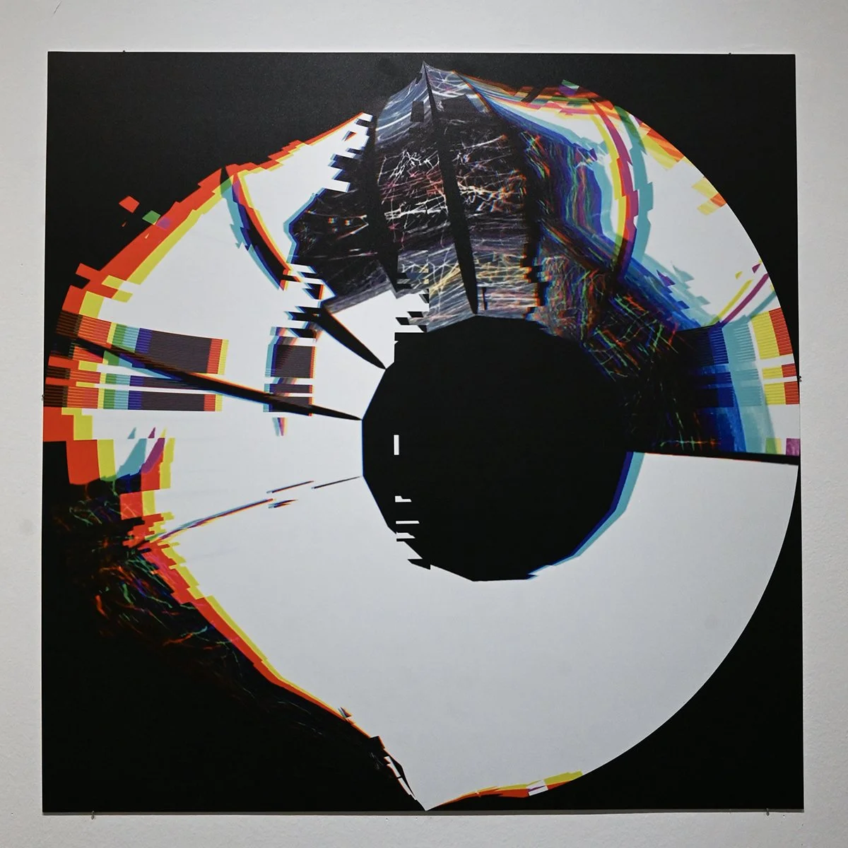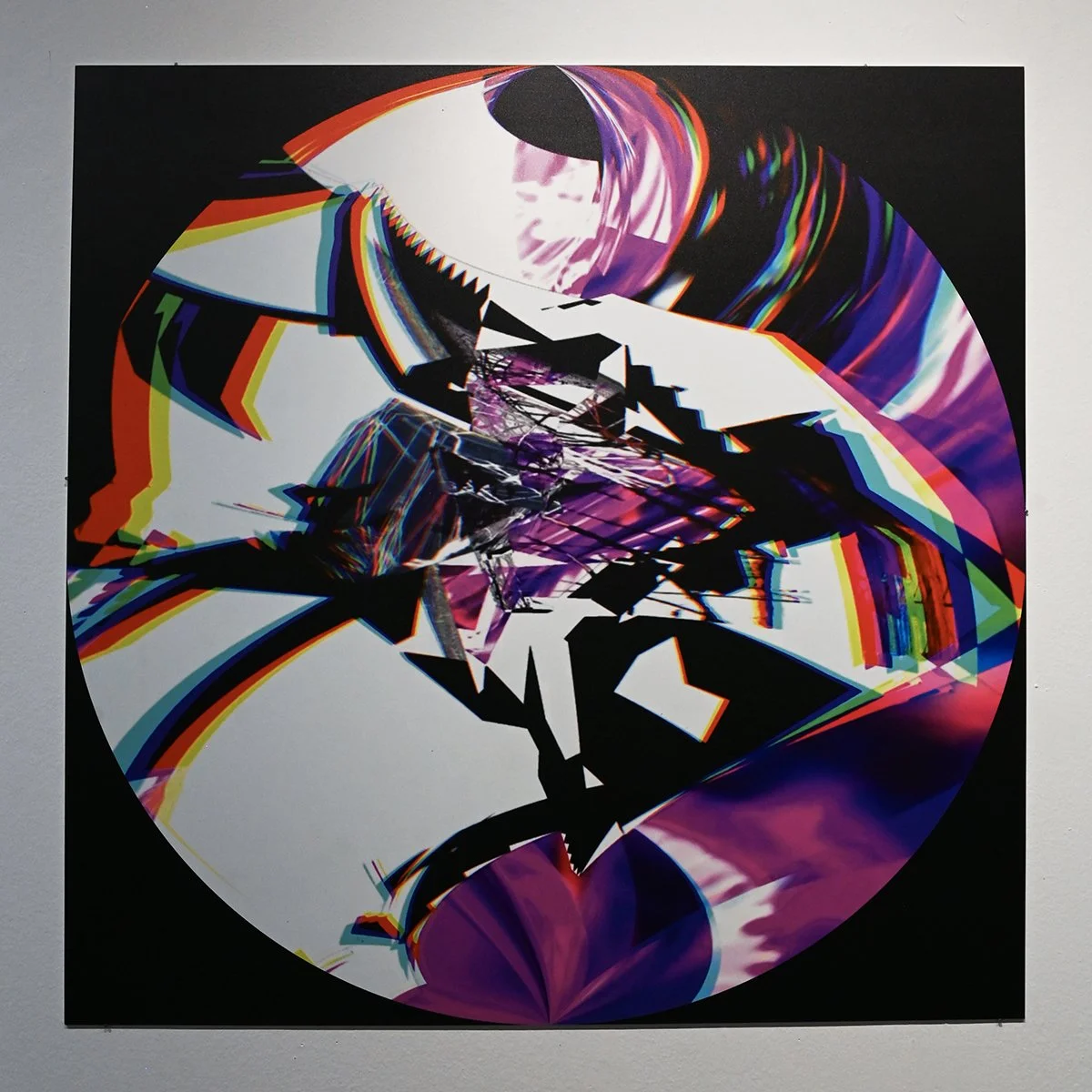 Rob Mazurek embraces the architecture of sound as vision and vision as sound to radically engage with form and feeling as a conduit towards new ways of seeing and hearing. His works concern the transfiguration of sound into moving images and stills (sound prints). These prints stand alone, or are reconfigured through painting/mark making. These new works, specifically designed for this exhibition, are a continuation and elaboration on his Radical Chimeras series, embodied in the recorded works Dimensional Stardust, Lightning Dreamers and Live at the Adler Planetarium of his flagship large ensemble Exploding Star Orchestra on International Anthem Records. Using sound as a determining point, these works fuse disparate elements to create a thing and then subvert a thing into new states of being. Through these projections of abstract forms, Mazurek invites viewers/listeners into spatial and perceptual realities and imagined realities that trigger new sensations, inviting viewers to see and hear in a more expansive way.