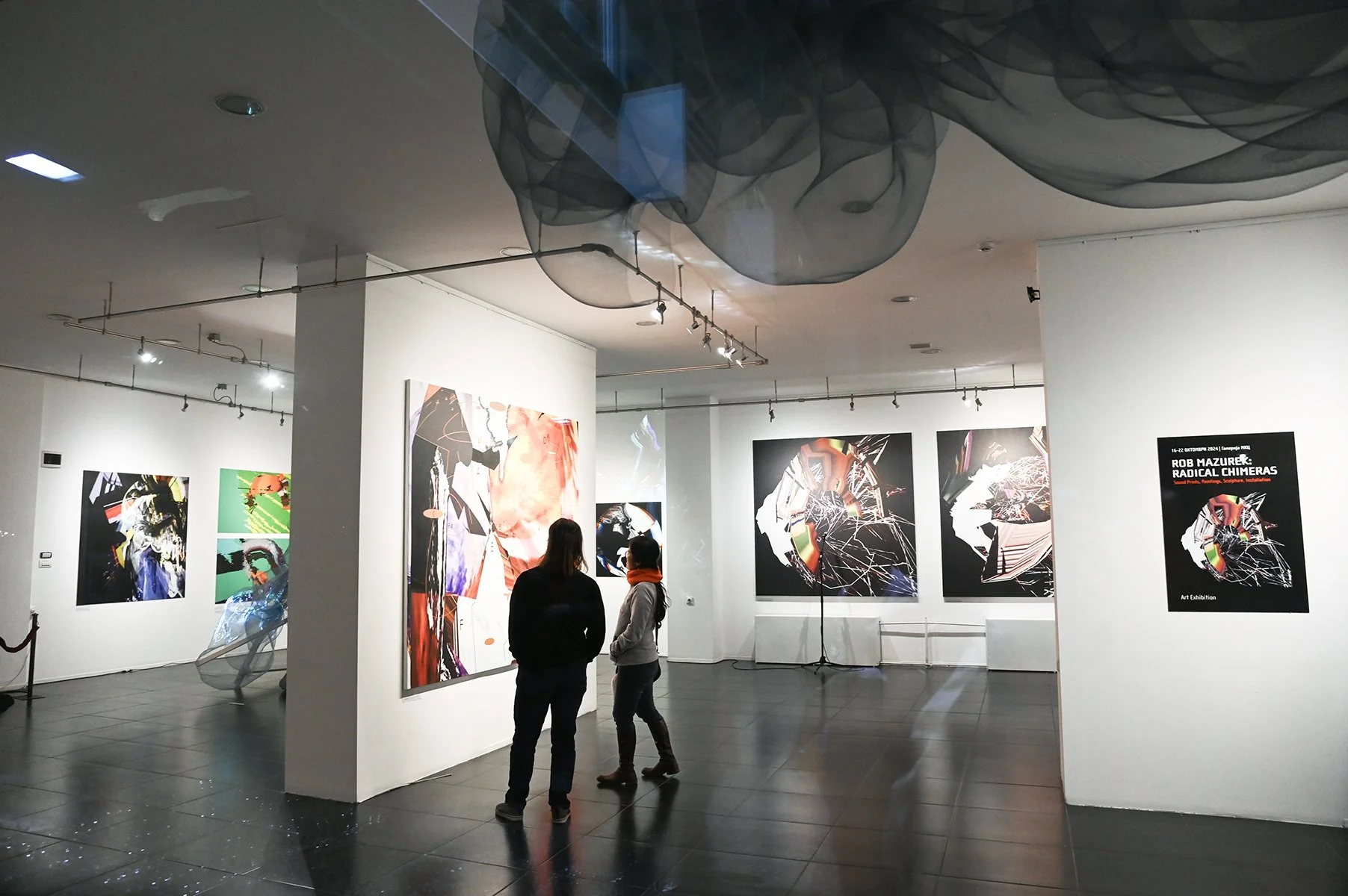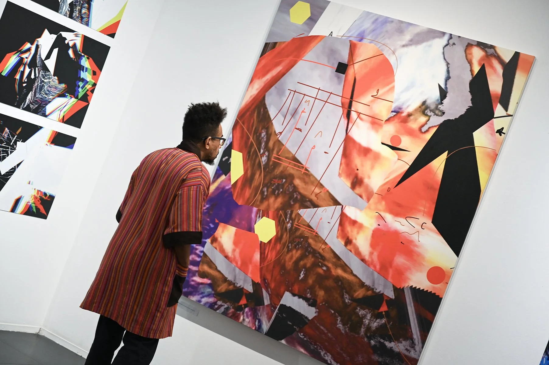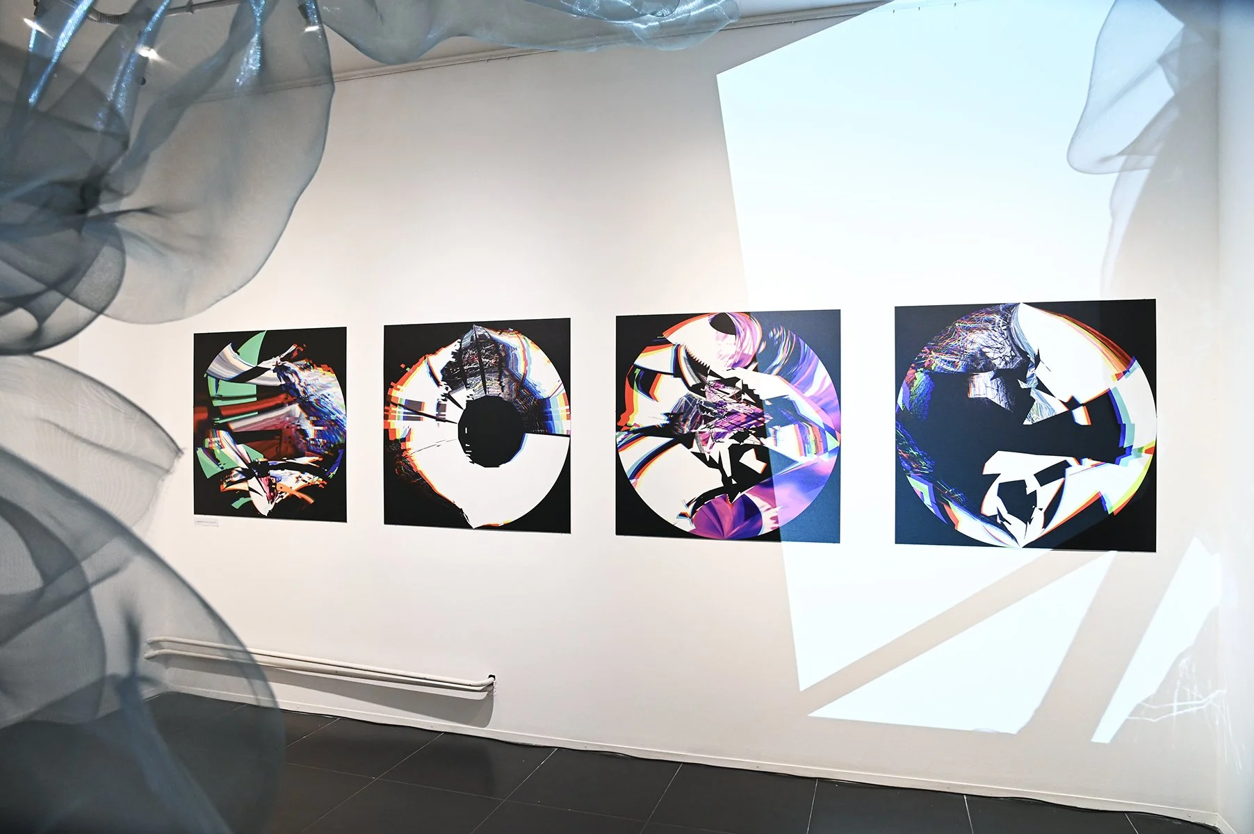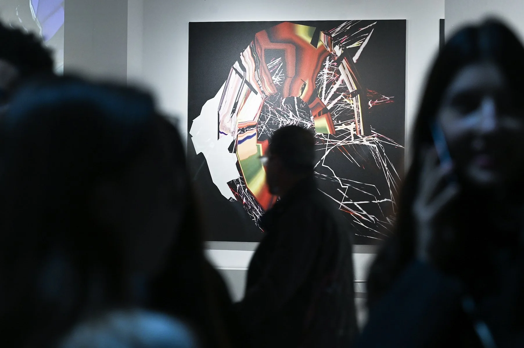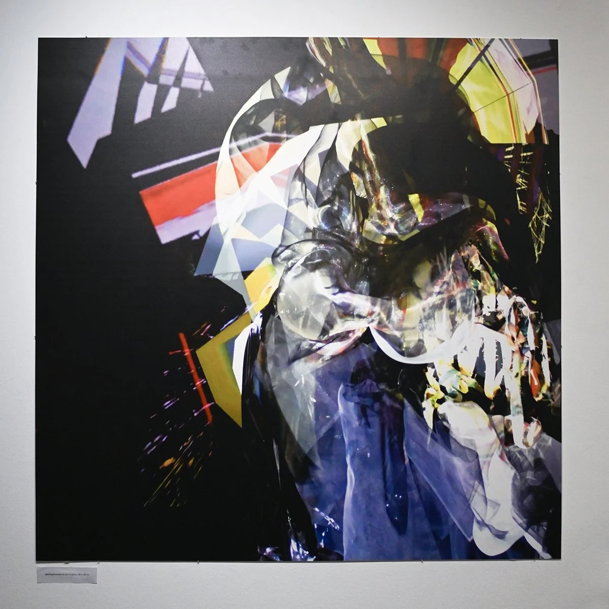 Rob Mazurek embraces the architecture of sound as vision and vision as sound to radically engage with form and feeling as a conduit towards new ways of seeing and hearing. His works concern the transfiguration of sound into moving images and stills (sound prints). These prints stand alone, or are reconfigured through painting/mark making. These new works, specifically designed for this exhibition, are a continuation and elaboration on his Radical Chimeras series, embodied in the recorded works Dimensional Stardust, Lightning Dreamers and Live at the Adler Planetarium of his flagship large ensemble Exploding Star Orchestra on International Anthem Records. Using sound as a determining point, these works fuse disparate elements to create a thing and then subvert a thing into new states of being. Through these projections of abstract forms, Mazurek invites viewers/listeners into spatial and perceptual realities and imagined realities that trigger new sensations, inviting viewers to see and hear in a more expansive way.