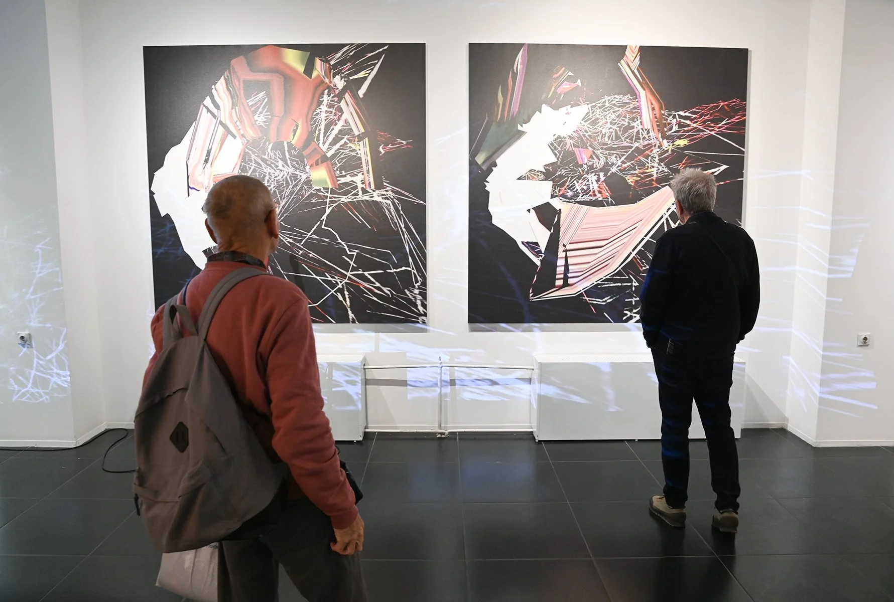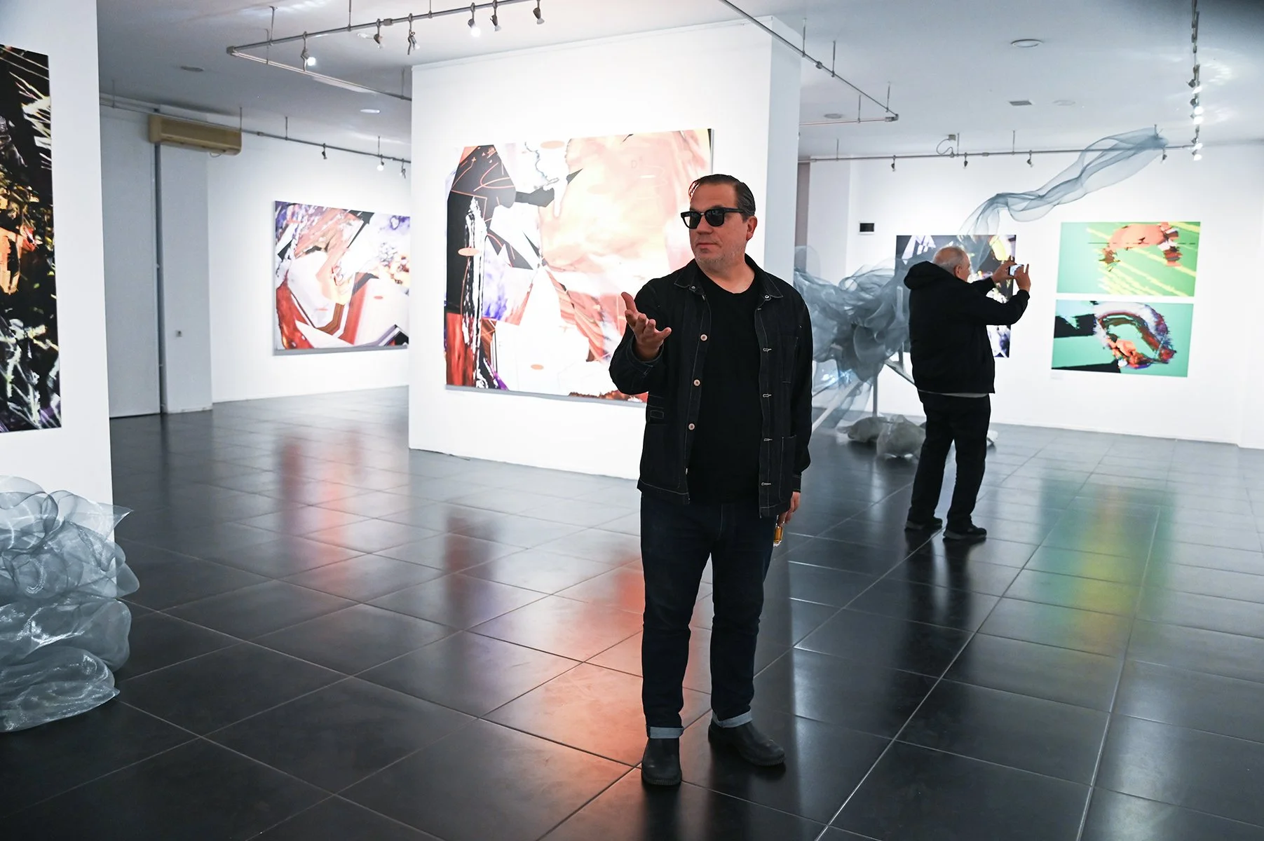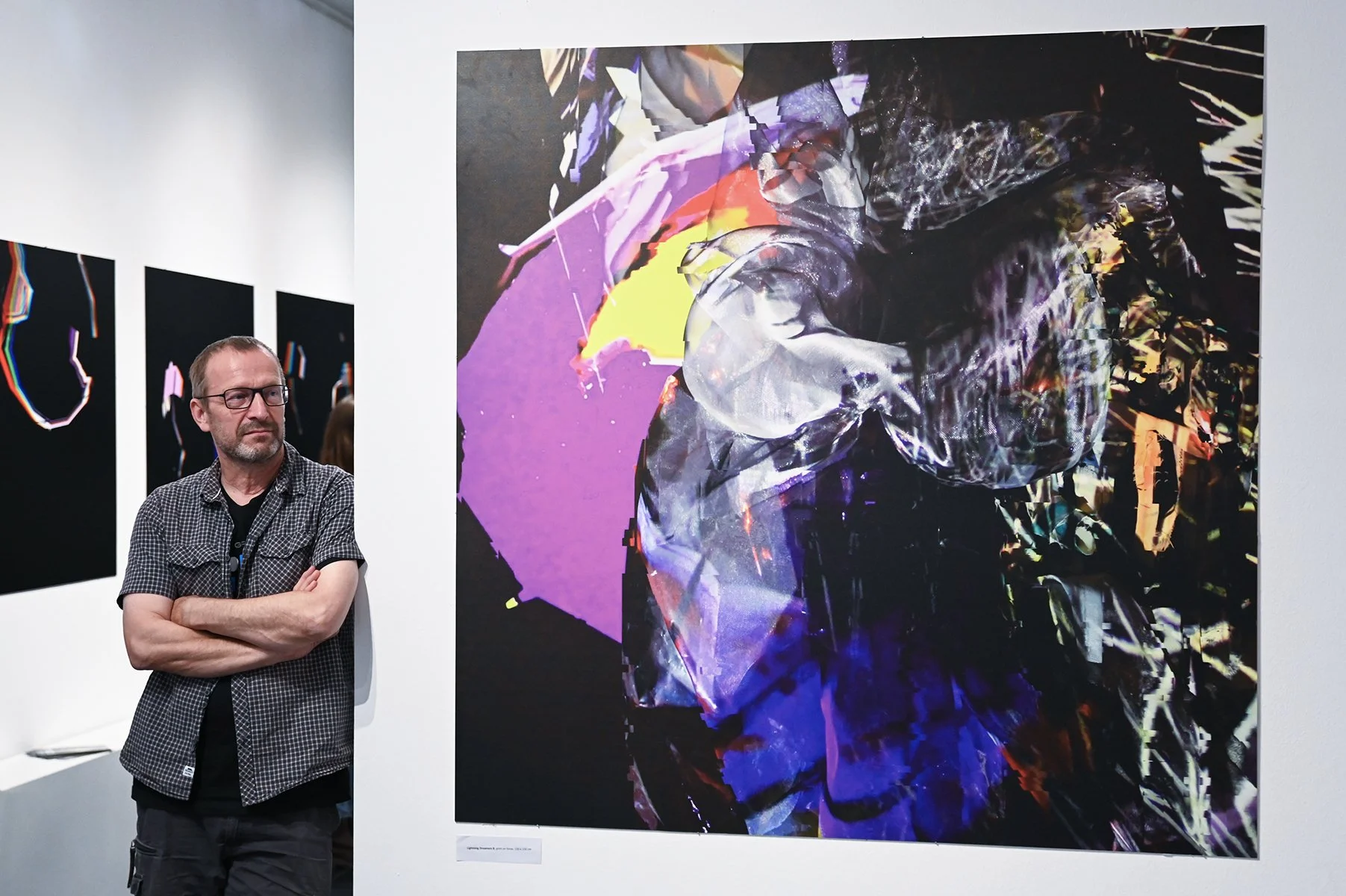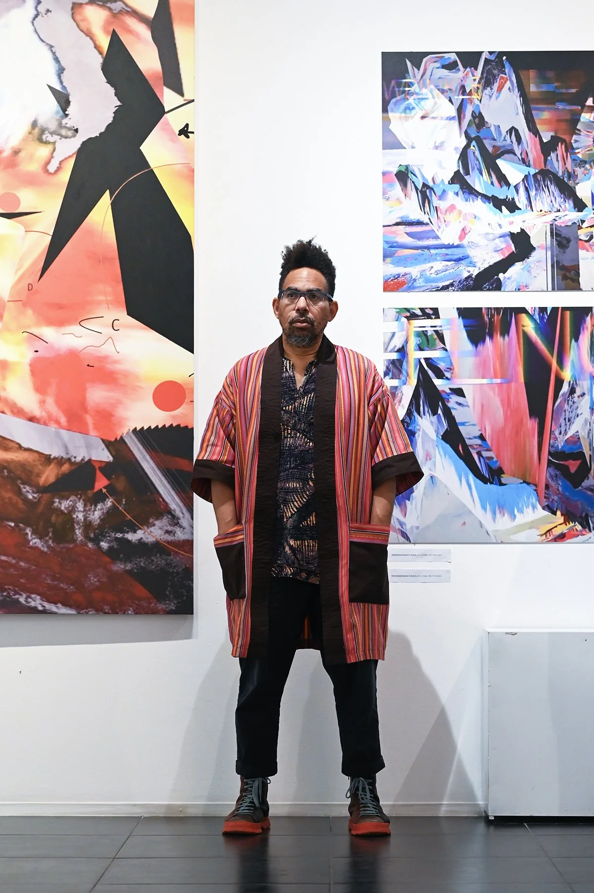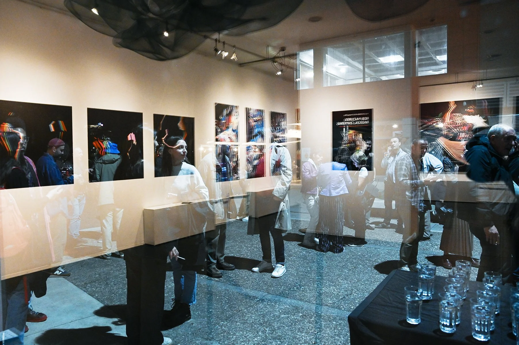 Rob Mazurek embraces the architecture of sound as vision and vision as sound to radically engage with form and feeling as a conduit towards new ways of seeing and hearing. His works concern the transfiguration of sound into moving images and stills (sound prints). These prints stand alone, or are reconfigured through painting/mark making. These new works, specifically designed for this exhibition, are a continuation and elaboration on his Radical Chimeras series, embodied in the recorded works Dimensional Stardust, Lightning Dreamers and Live at the Adler Planetarium of his flagship large ensemble Exploding Star Orchestra on International Anthem Records. Using sound as a determining point, these works fuse disparate elements to create a thing and then subvert a thing into new states of being. Through these projections of abstract forms, Mazurek invites viewers/listeners into spatial and perceptual realities and imagined realities that trigger new sensations, inviting viewers to see and hear in a more expansive way.